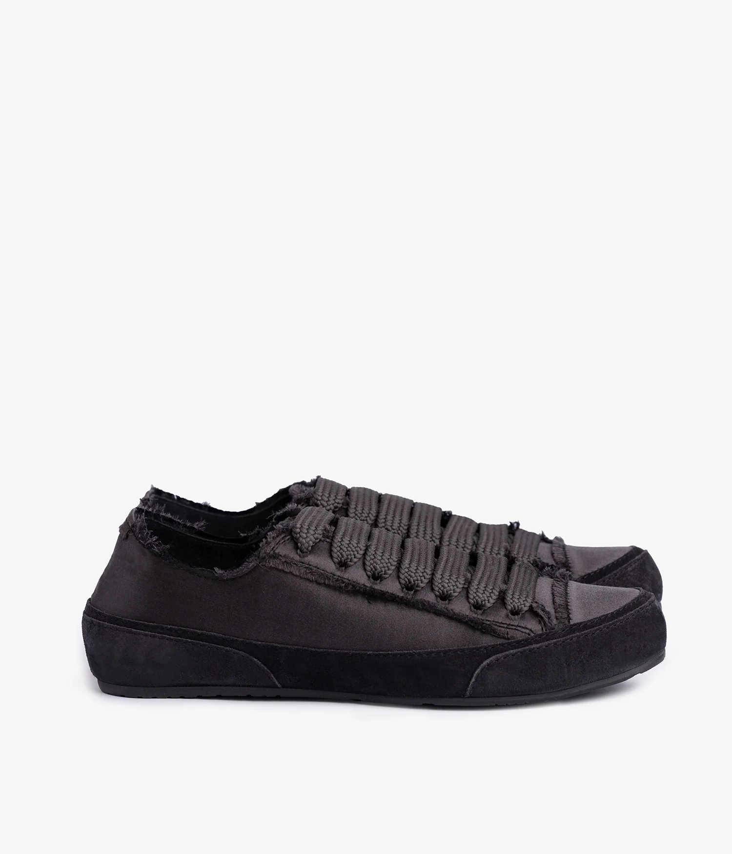 Black frayed satin sneaker
