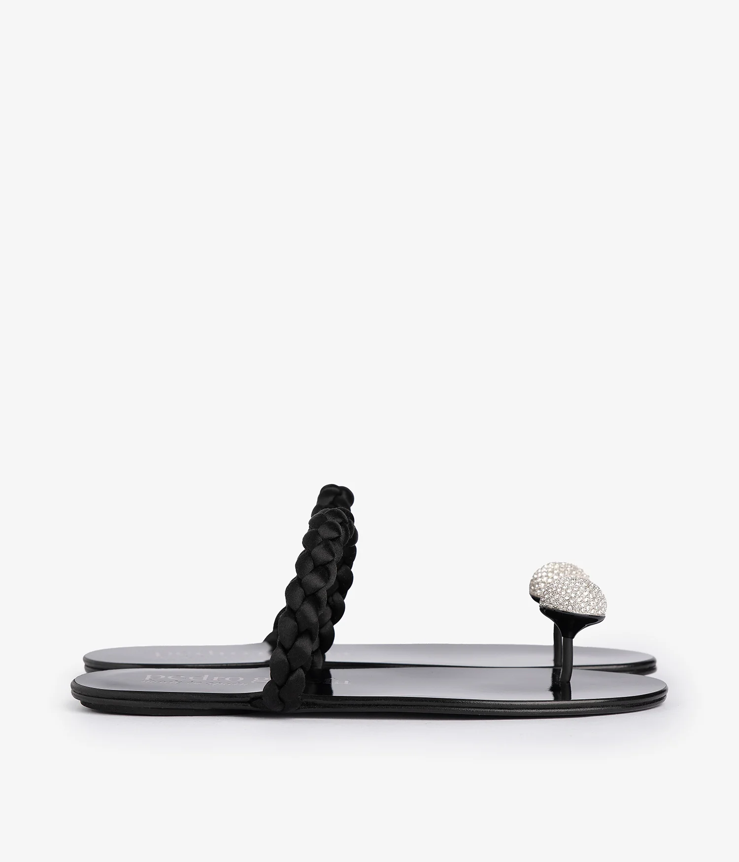 Flat sandal in black satin leather