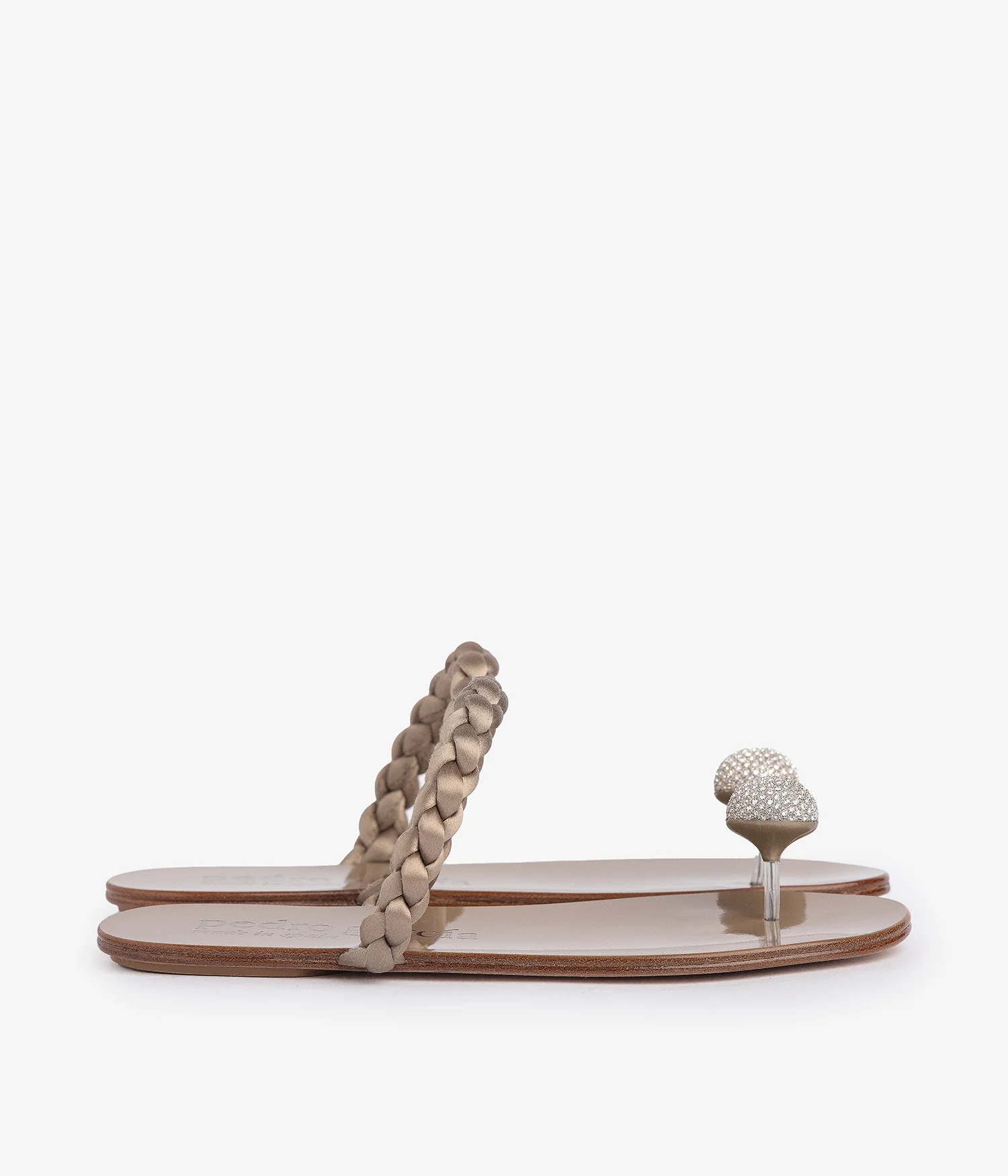 Flat sandal in grey satin leather