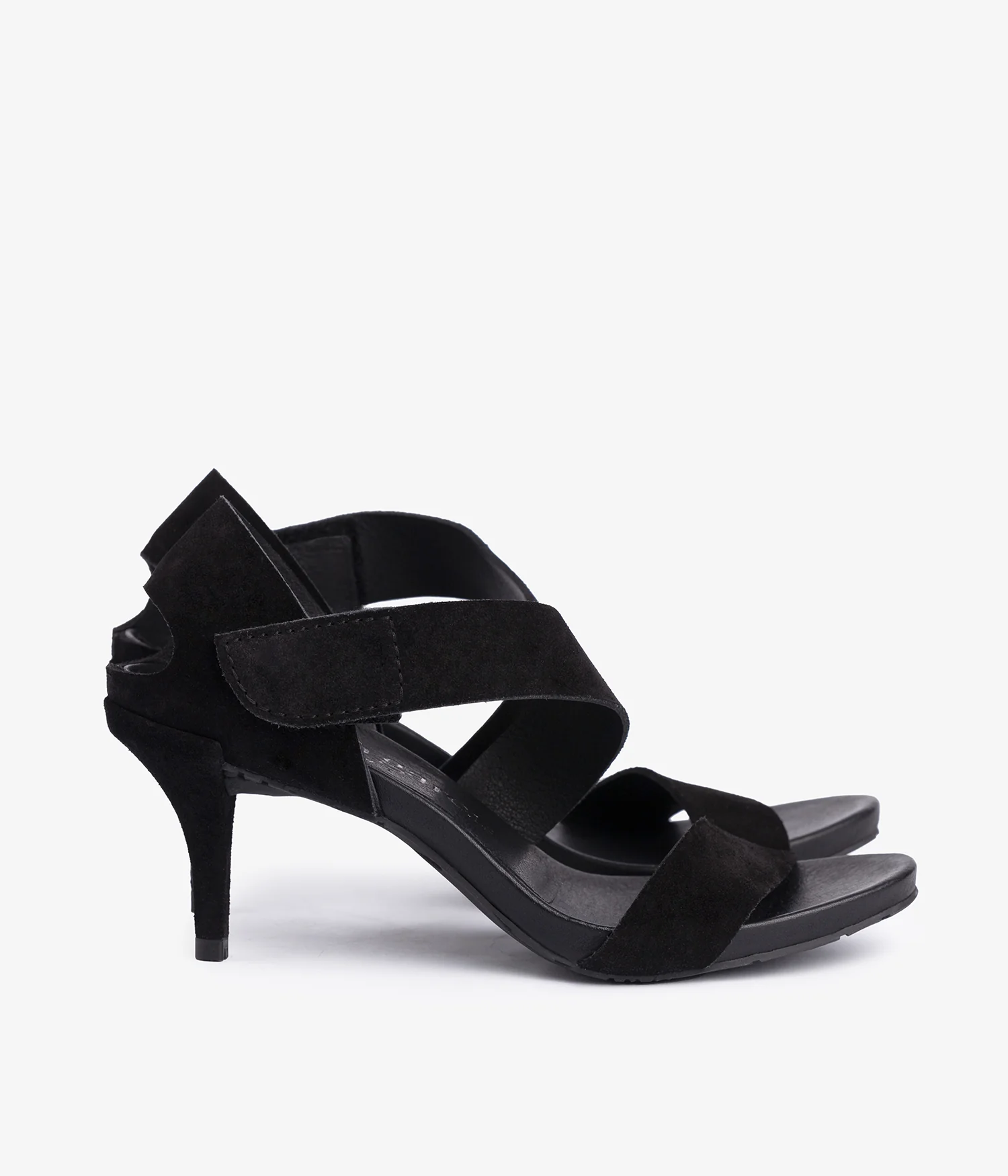 Mid heel sandal in black leather
